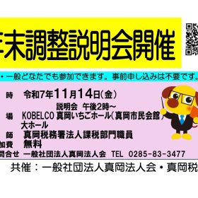**年末調整説明会** 令和7年度税制改正後の源泉徴収事務対応に備えて・・ご参加ください 一般社団法人真岡法人会と真岡税務署共催で年末調整説明会を開催…